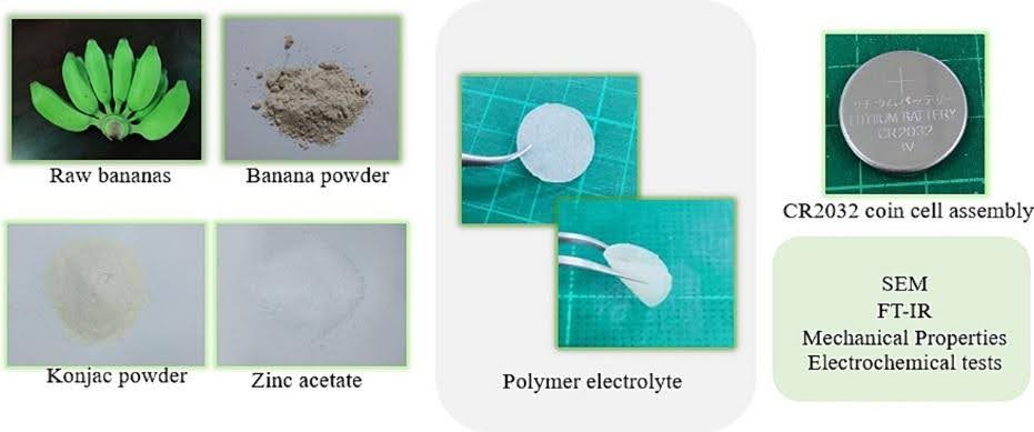 • Biopolymer electrolyte from banana powder-konjac glucomannan for zinc-ion batteries