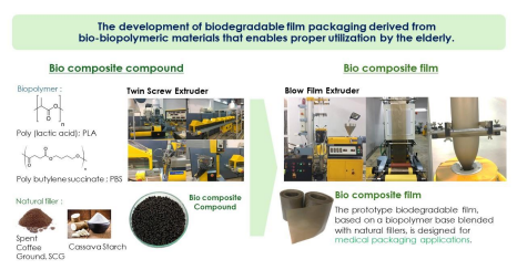 • The development of biodegradable film packaging derived from bio-biopolymeric materials that enables proper utilization by the elderly. (PMU-B, 2024)